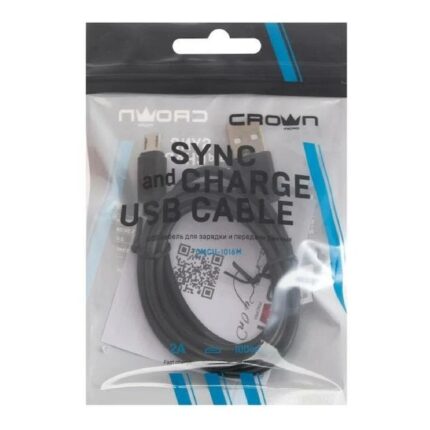 Дата кабель USB — micro USB 1М 2А для QC черная оплётка Crown Micro