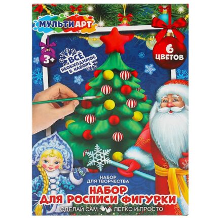 Набор д/дет тв-ва фигурка для росписи (краски, кисточка) елочка MultiArt в кор.24шт