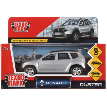 Машина металл «RENAULT DUSTER» 12см, открыв. двери, инерц, серебристый в кор. Технопарк в кор.2*36шт
