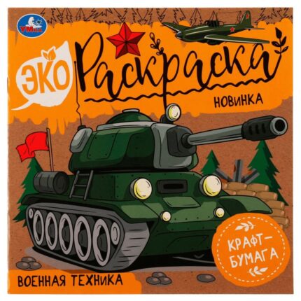 Военная техника. Эко-раскраска. 200х200 мм. Скрепка. 8 стр. Умка в кор.50шт