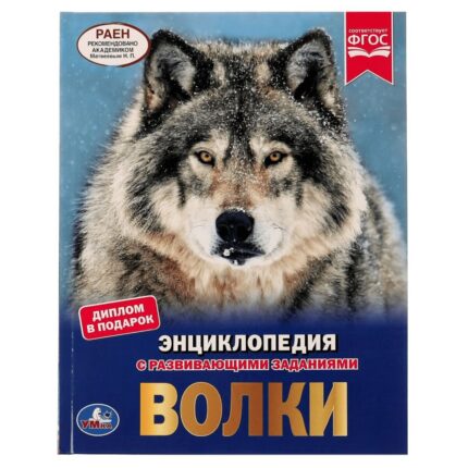 Волки. Энциклопедия А4. 197х255мм, 48 стр.мелов. бумага, тв. переплет, фольга. Умка в кор.15шт
