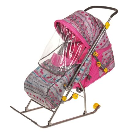 Санки-коляска «Умка 3/3» Вязаный розовый (2 колеса) /Ника/