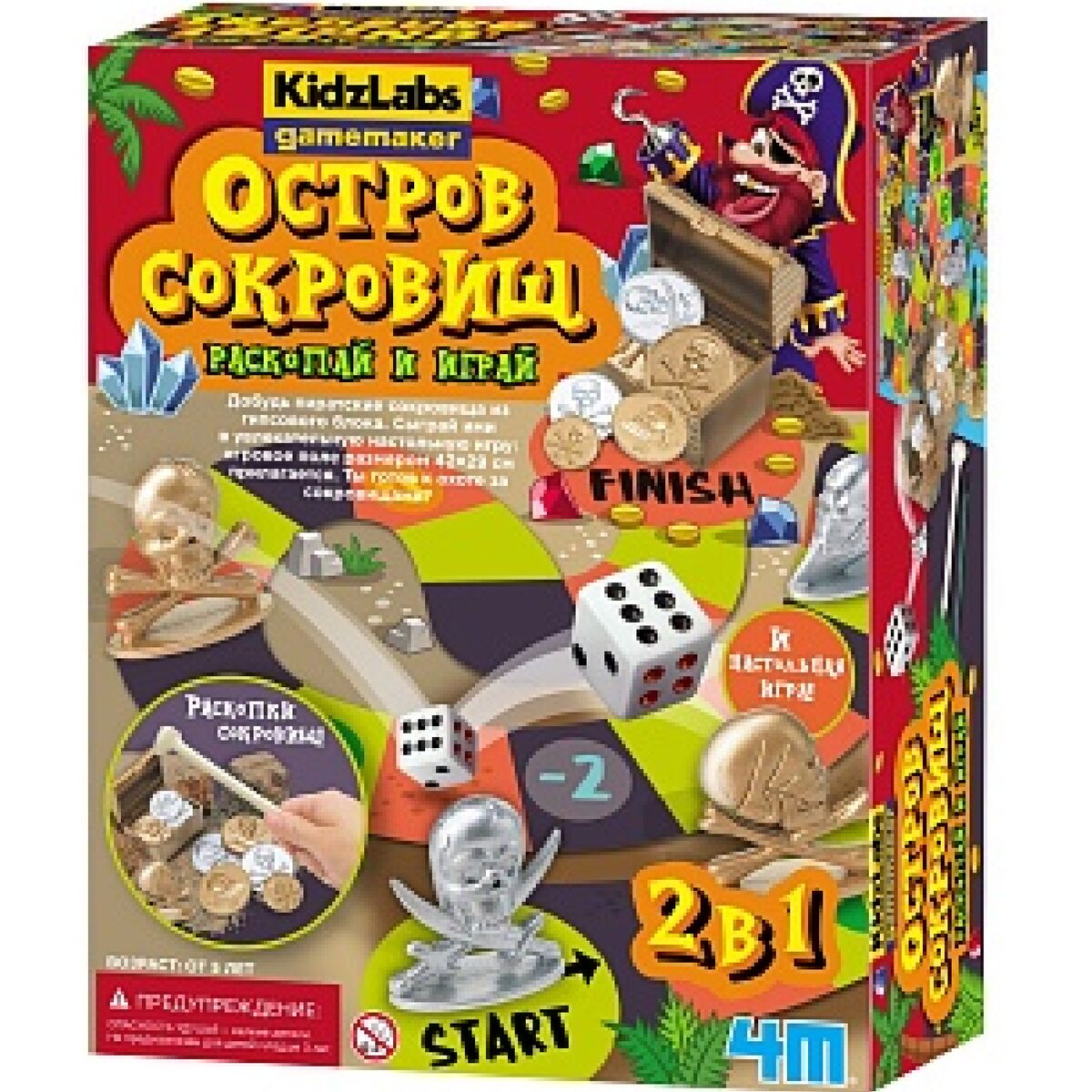 Набор 2в1: раскопки и настольная игра. Добудь пиратские сокровища из гипсового блока. Сыграй ими в увлекательную настольную игру (игровое поле размером 42×29 см прилагается). Ты готов к охоте за сокровищами?