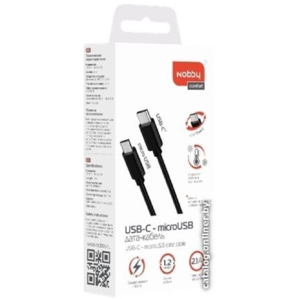Дата кабель USB-C - micro USB 1.2м 2A NOBBY 249 ₽