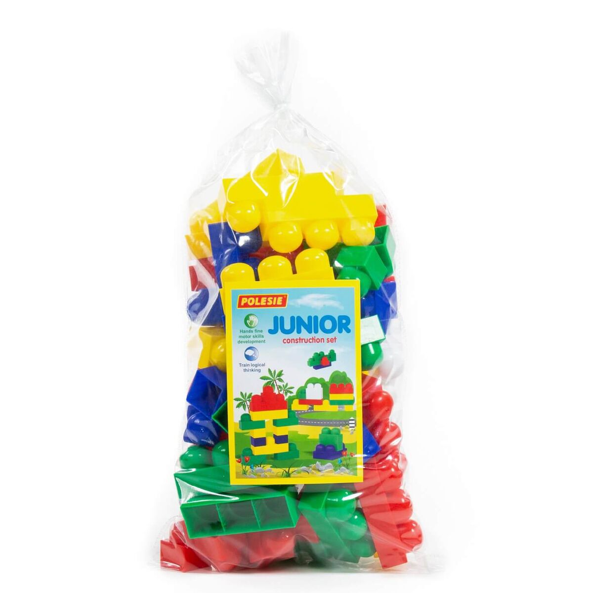 Играть конструктором «Юниор» могут даже малыши. И именно для них создана эта серия конструкторов компании «Полесье». Элементы конструктора имеют объёмную форму и сглаженные углы, чтобы не допустить травмирования ребёнка. Игра с конструктором способствует развитию у маленького строителя мелкой моторики, он может фантазировать, создавать фигурки и башни. В комплекте 69 элементов.
