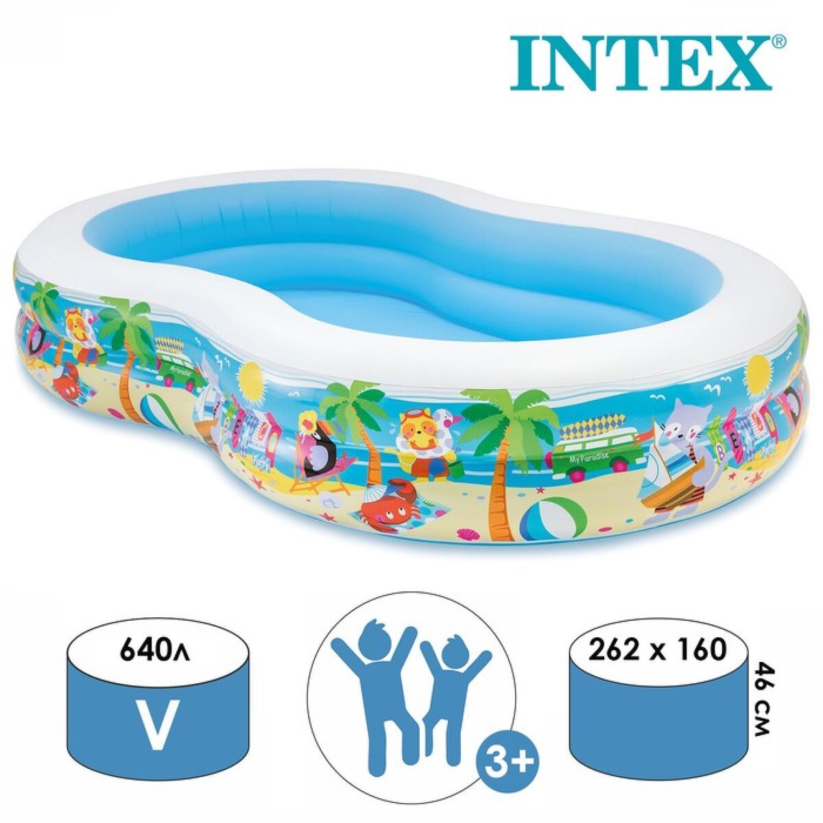 Бассейн надувной 262*160*46 см Swim Center Seashore Intex (56490NP)