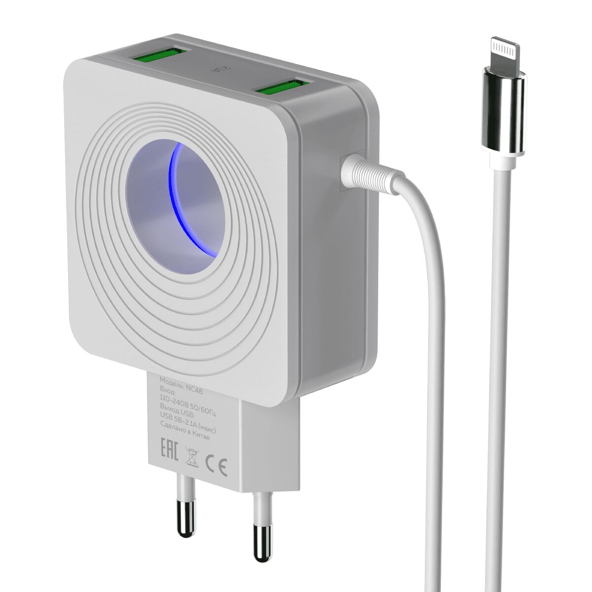 CЗУ для Apple 8-pin 2USB с кабелем 2.1A NC48i белый More Choice