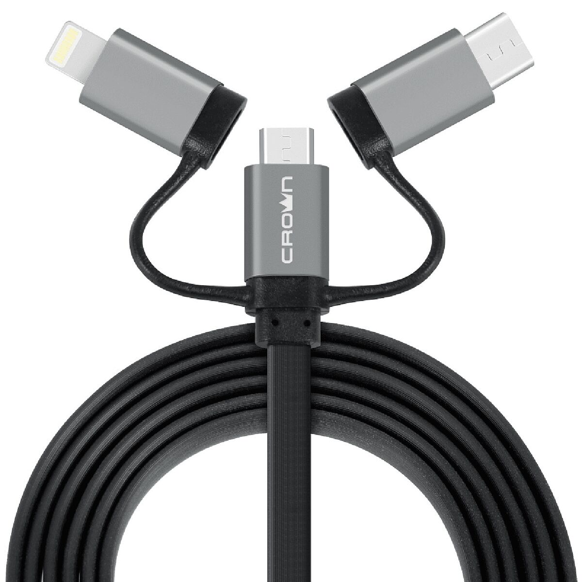 Дата кабель 3в1 USB — Tipe-CMicroLightning черный с QC3.0 Crown Micro