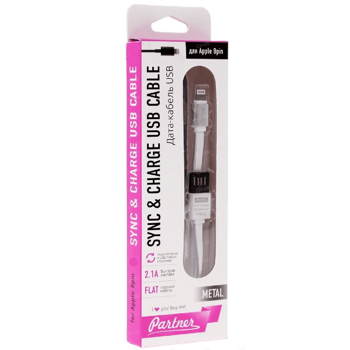 Главная Аксы Сотовые аксессуары Дата кабель Apple 8 pin 1м Дата кабель USB — iPhone 5 2.1A Partner