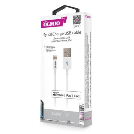 Дата кабель MFI USB — Lightning 8 pin 2.4A 1 метр белый OLMIO