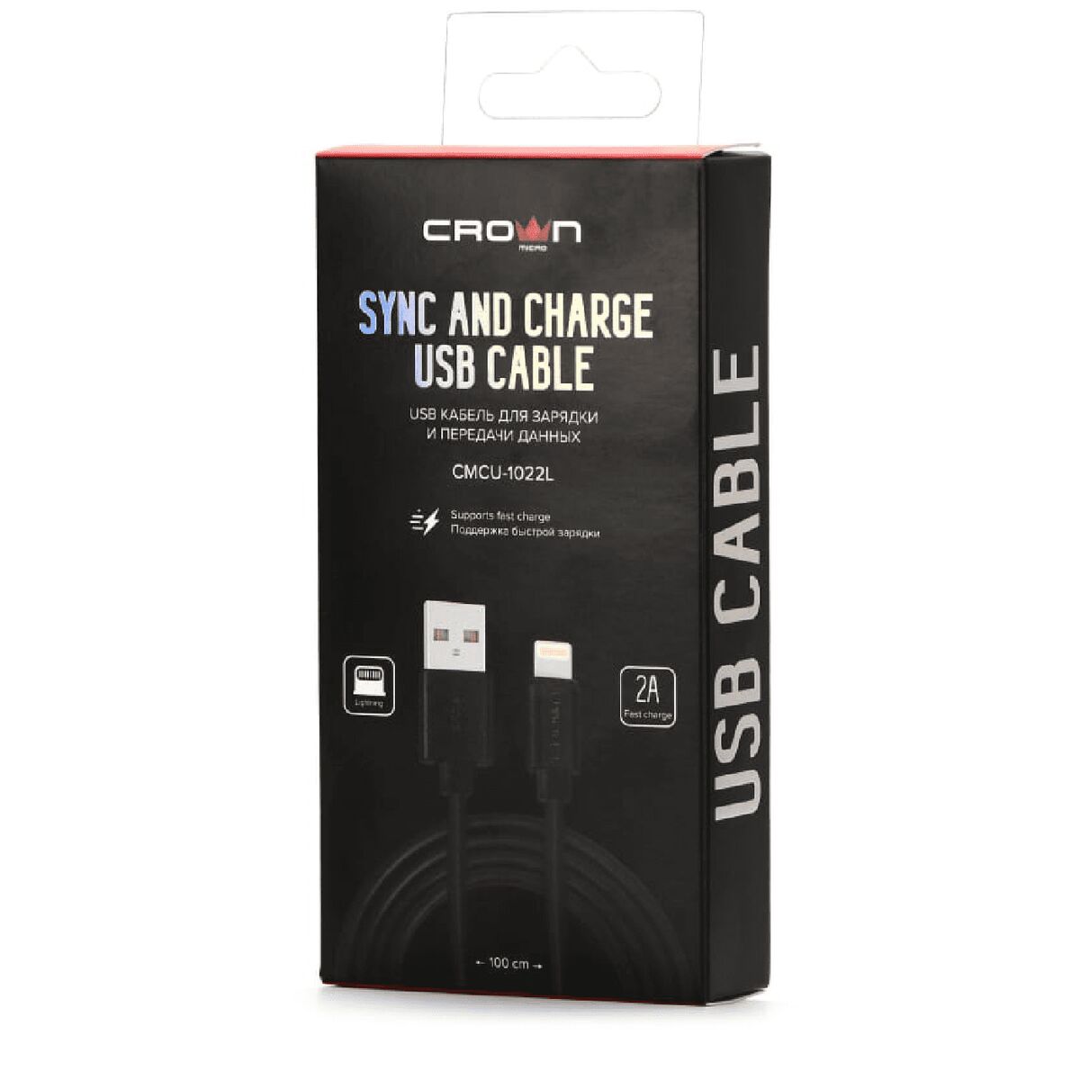 Дата кабель USB — Lightning с быстрой зарядкой 2Aчерный Crown Micro