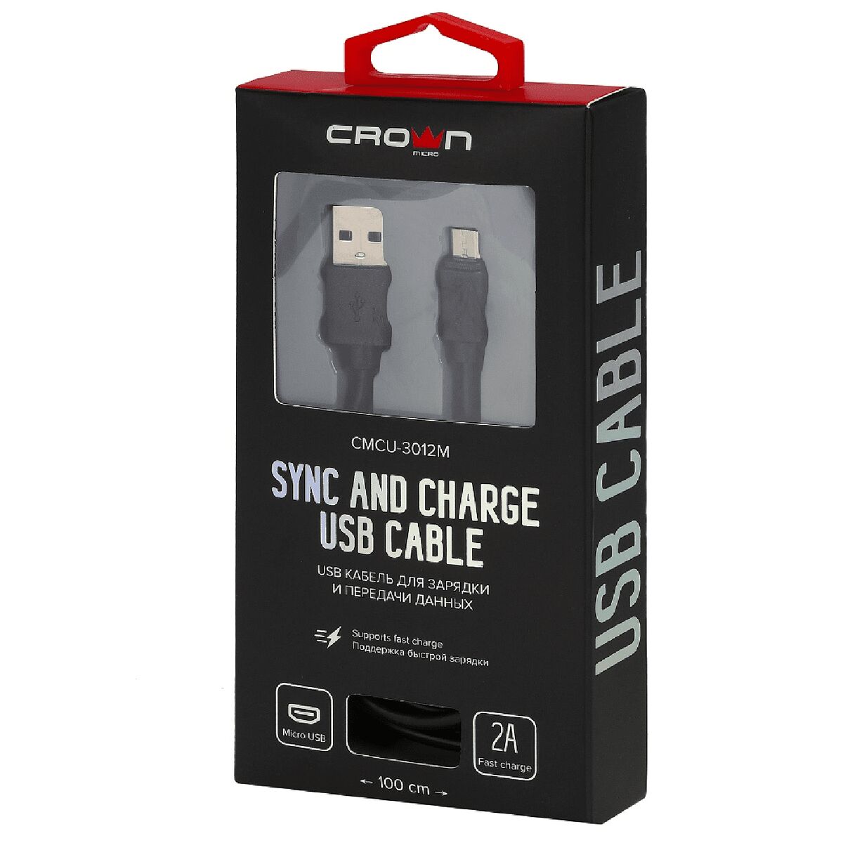 Дата кабель USB — micro USB 1М 2А для QC черная оплётка Crown Micro