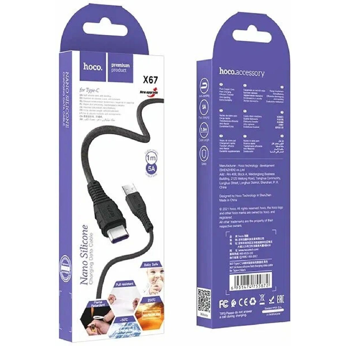 Дата кабель X67 Type-C 1м 5A Hoco