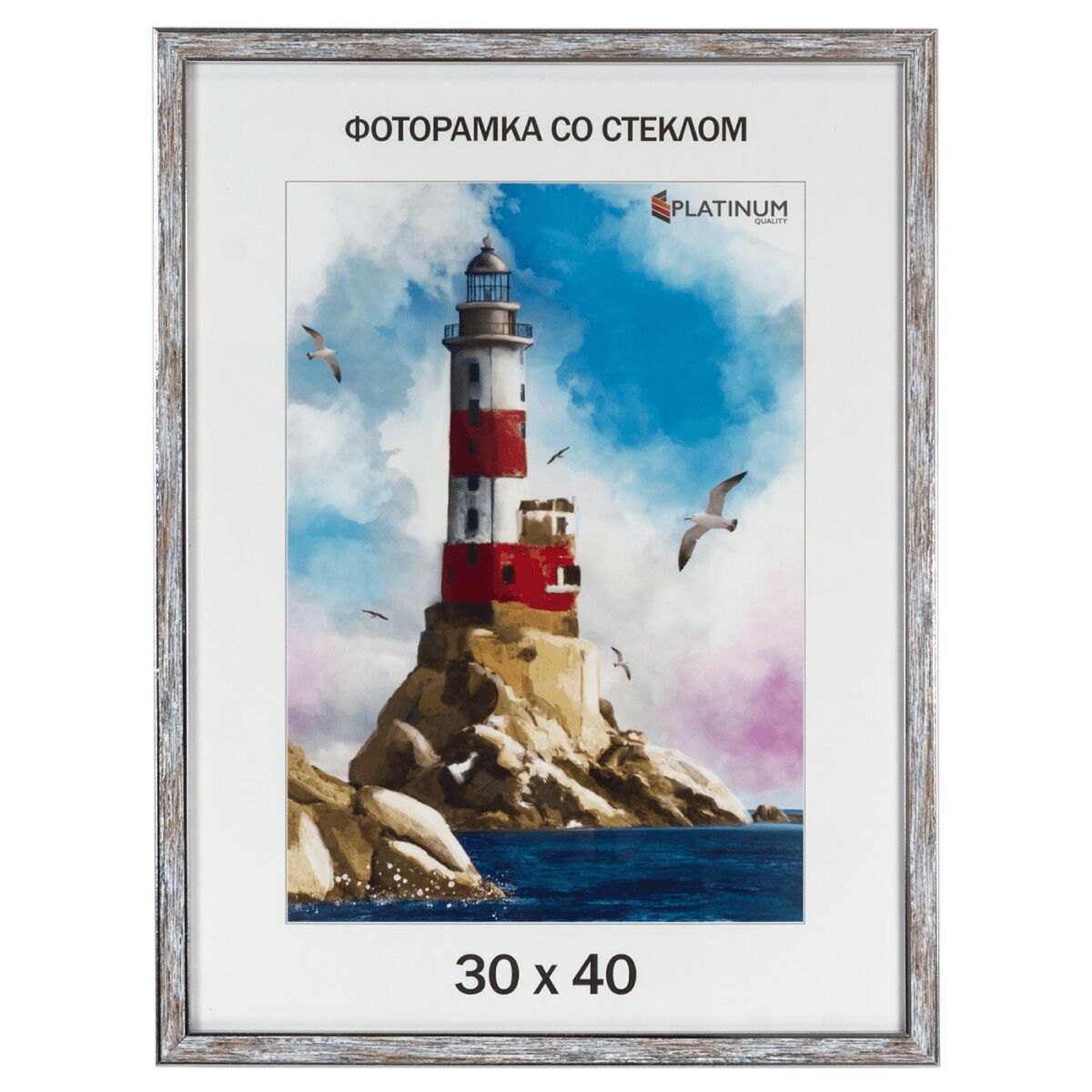 Фоторамка для фото пластиковая Акварель морозное серебро 30х40