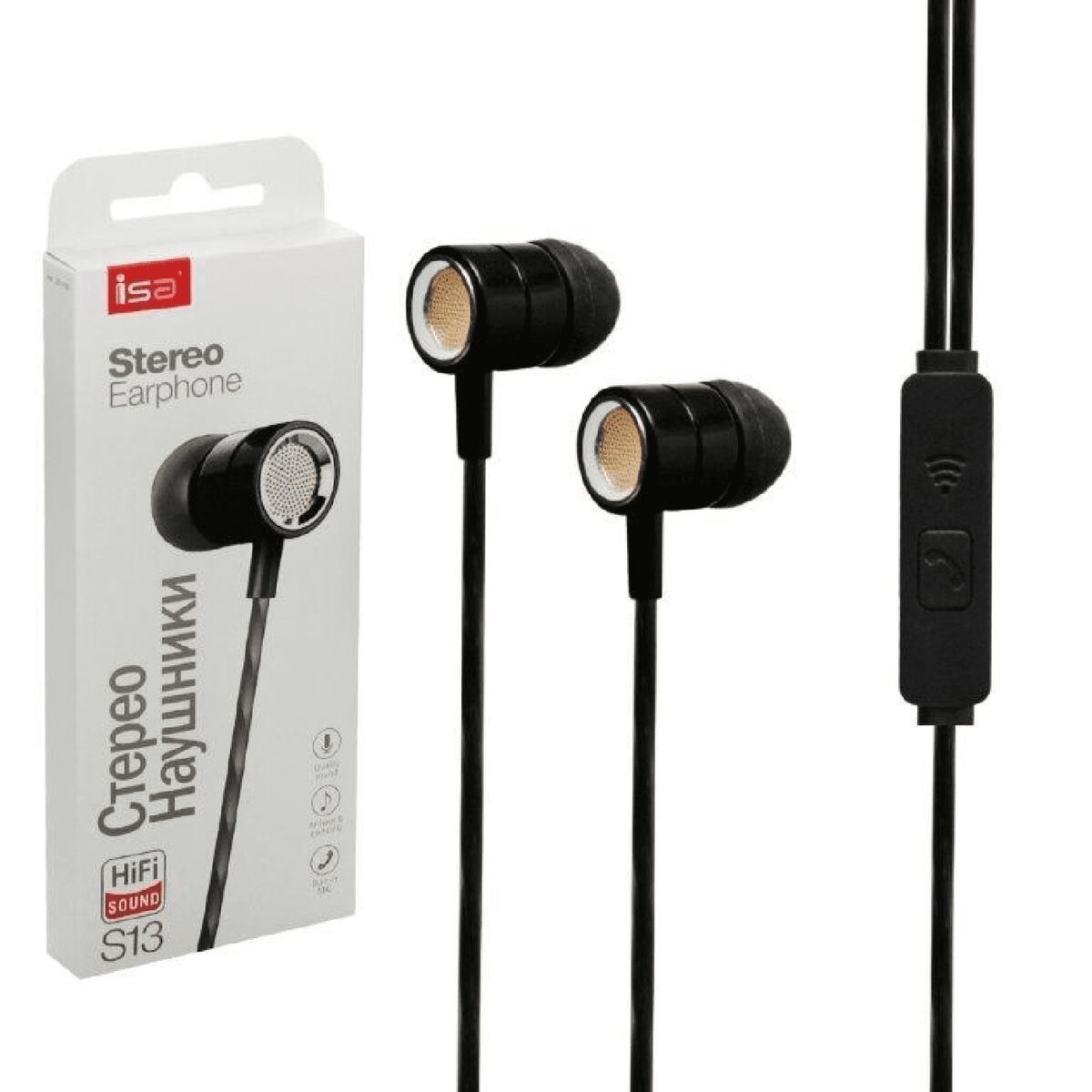 Главная Аксы Сотовые аксессуары Гарнитуры 3.5mm Гарнитура 3,5мм ISA S13 (черная)
