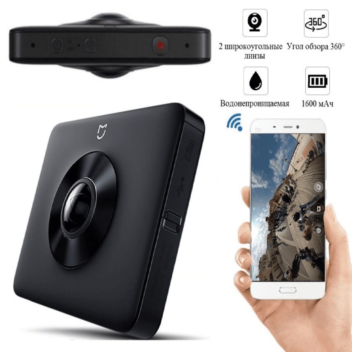Mi Sphere Camera Kit 360° — экшн-видеокамера с уникальной возможностью сферической съёмки. Спектр ее применения очень широк. Это редкий представитель камер для создания VR контента. Ей подвластны как фото, так и видео, при этом зона захвата кадра идет на все 360 градусов. Она оснащена сразу двумя 16-мегапиксельными камерами с углом обзора по 190°.
