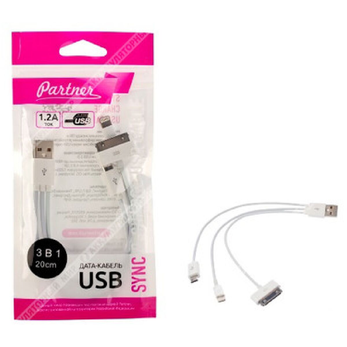 Дата кабель USB — iPhone 5+microUSB 2.1A Partner