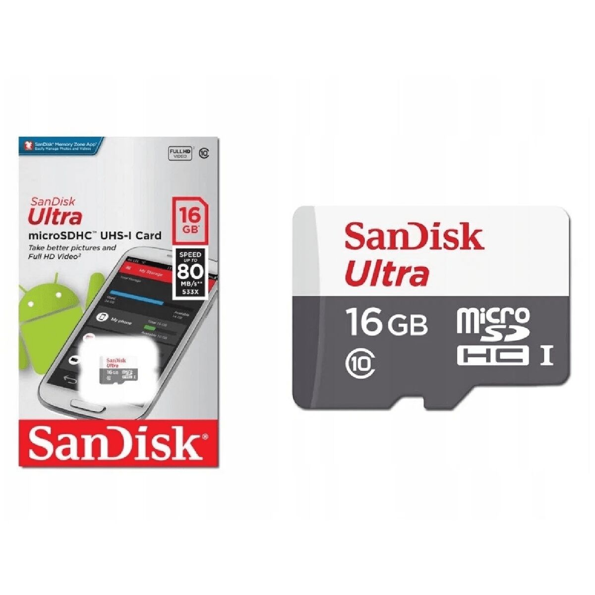 Карта памяти Sandisk micro SD 16GB Class10 80Mb/s с ад
