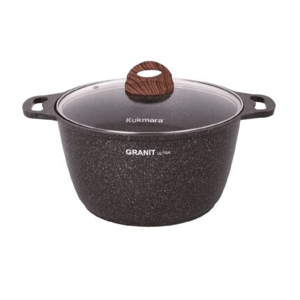 Kukmara кастрюля 6л Granit ultra кго62а алюминий,антприг покрытиесв.мрамор крышка стекло