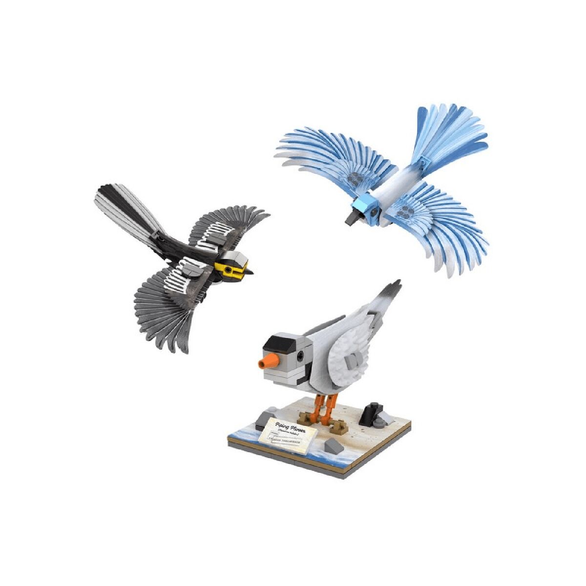Конструктор от CADA представляет собой набор для постройки моделей североамериканских птиц из 350 деталей. Набор включает в себя золотощёкого лесного певуна, голубую кустарниковую сойку, желтоногого зуйка и подставки к ним. Птицы имеют съёмные крылья, которые позволяют оформить модель сидящей на ветке или в полёте. Таблички показывают название птицы, научное название вида и природоохранный статус.