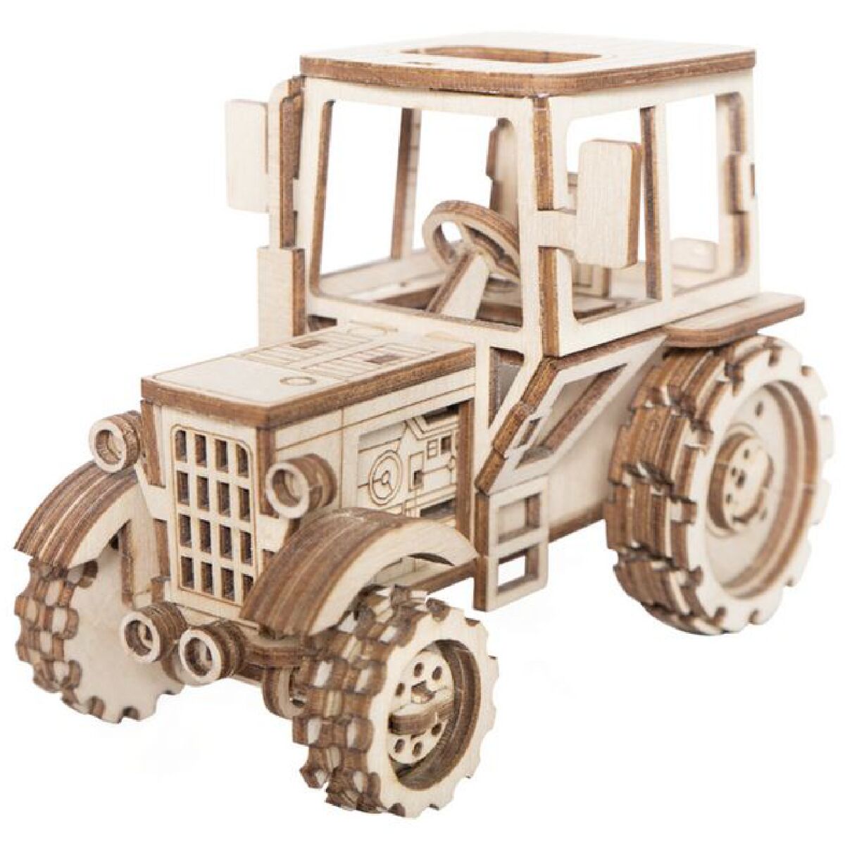 Деревянный 3D конструктор Lemmo Трактор. Детали конструктора выполнены из качественной древесины. Набор укомплектован клеем ПВА и наждачной бумагой. В результате сборки получается полноценная красивая игрушка с подвижными элементами. После сборки при желании можно раскрасить акриловыми и гуашевыми красками.
