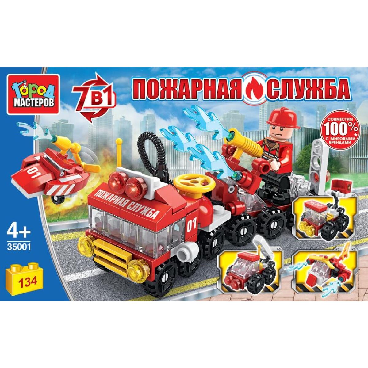 Конструктор ПОЖАРНАЯ МАШИНА 7в1, 134 дет. Город мастеров в кор.36шт
