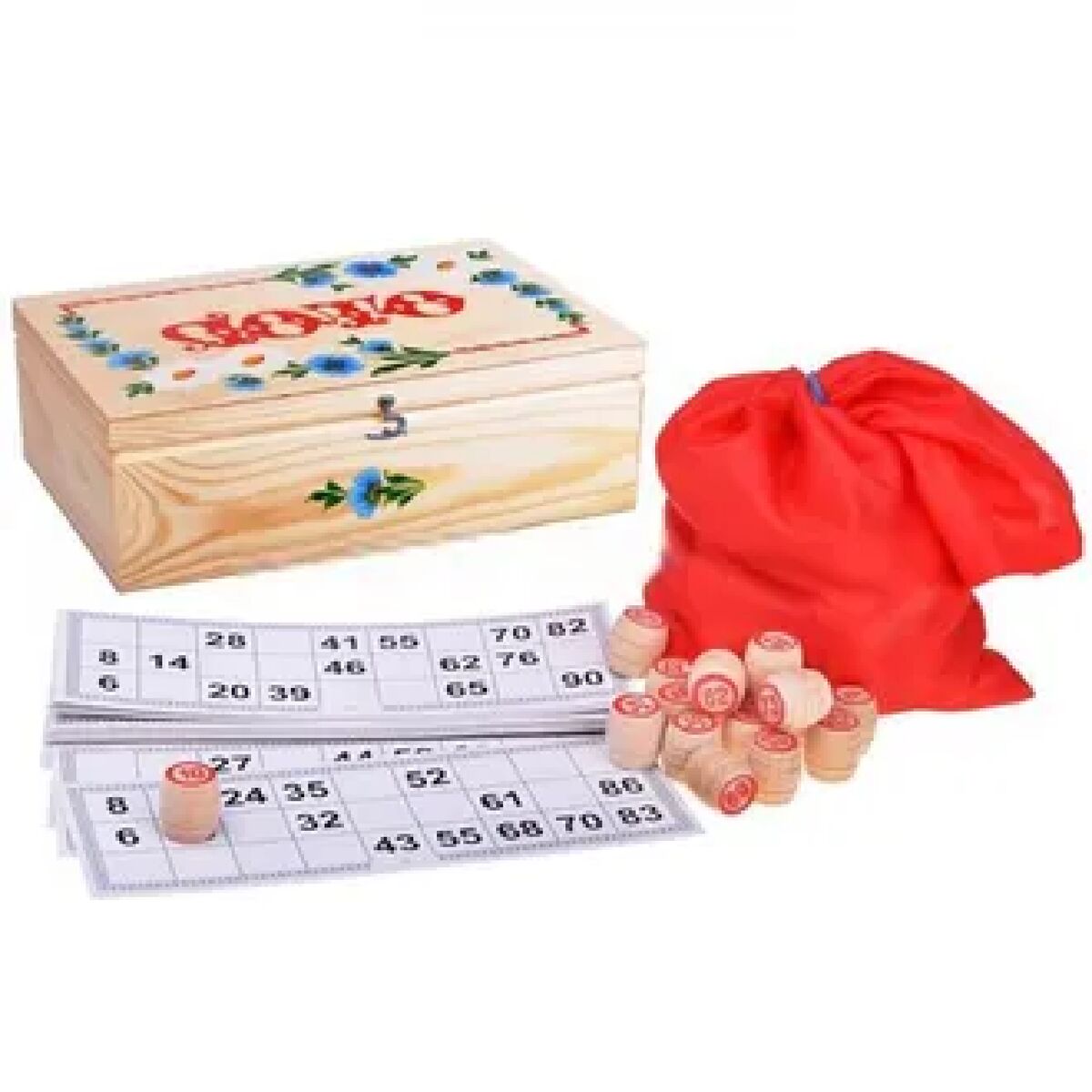 Комплектность: шкатулка, карточки, лото в мешке, закрывашки
