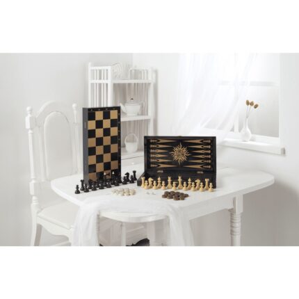 Игра 3 в 1 малая с обиходными пласт. шахматами (нарды,шахматы,шашки) черная рисунок золото 3 990 ₽