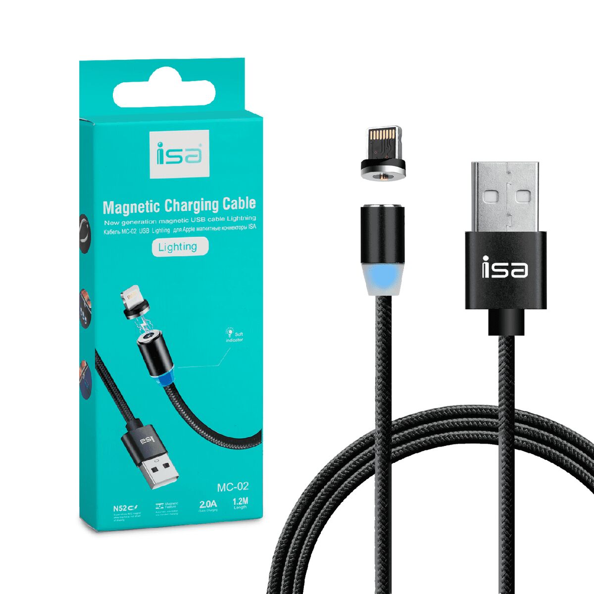 Магнитный кабель (только зарядка) MC-01 USB - micro USB 2А 1.2м ISA 490 ₽