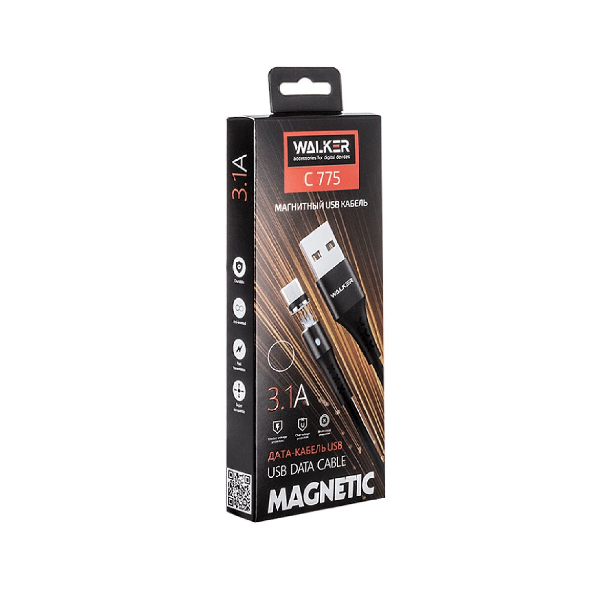 Магнитный кабель (только зарядка) С775 USB — micro USB 3,1А Walker