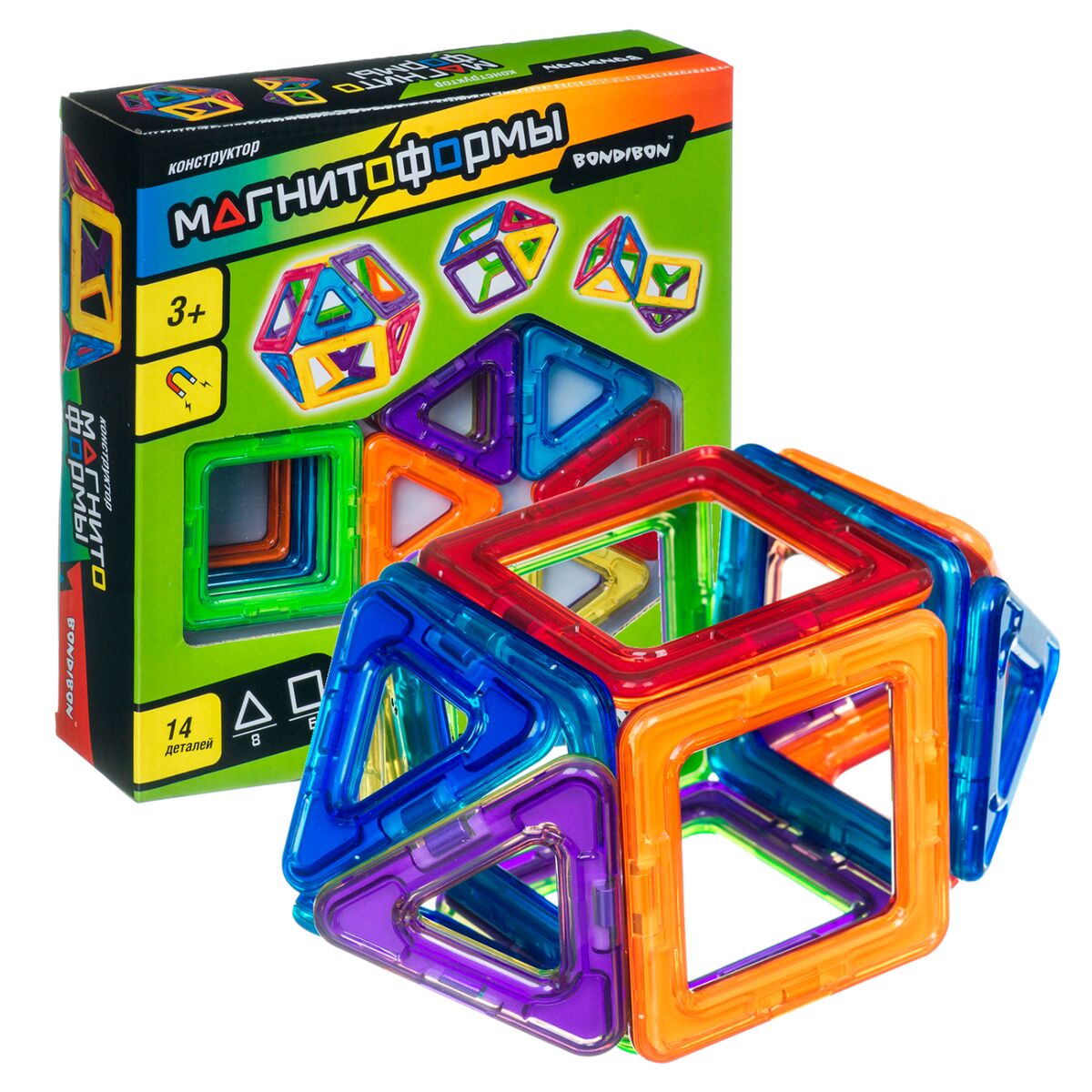 Конструктор «Магнитоформы» от Bondibon — это яркие детали разнообразных геометрических форм. Каждый набор содержит определенное количество деталей соответствующей конфигурации. Ни для кого не секрет, что конструкторы являются одной из самых развивающих игрушек для детей. Сборка конструкторов напрямую влияет на развитие математических способностей. Кроме того, игра в конструкторы развивает моторику, логическое и пространственное мышление, способствует развитию воображения и творческого мышления. В данном наборе представлено 14 деталей (6 квадратов 4х4 см, 8 треугольников 3,5х3 см).