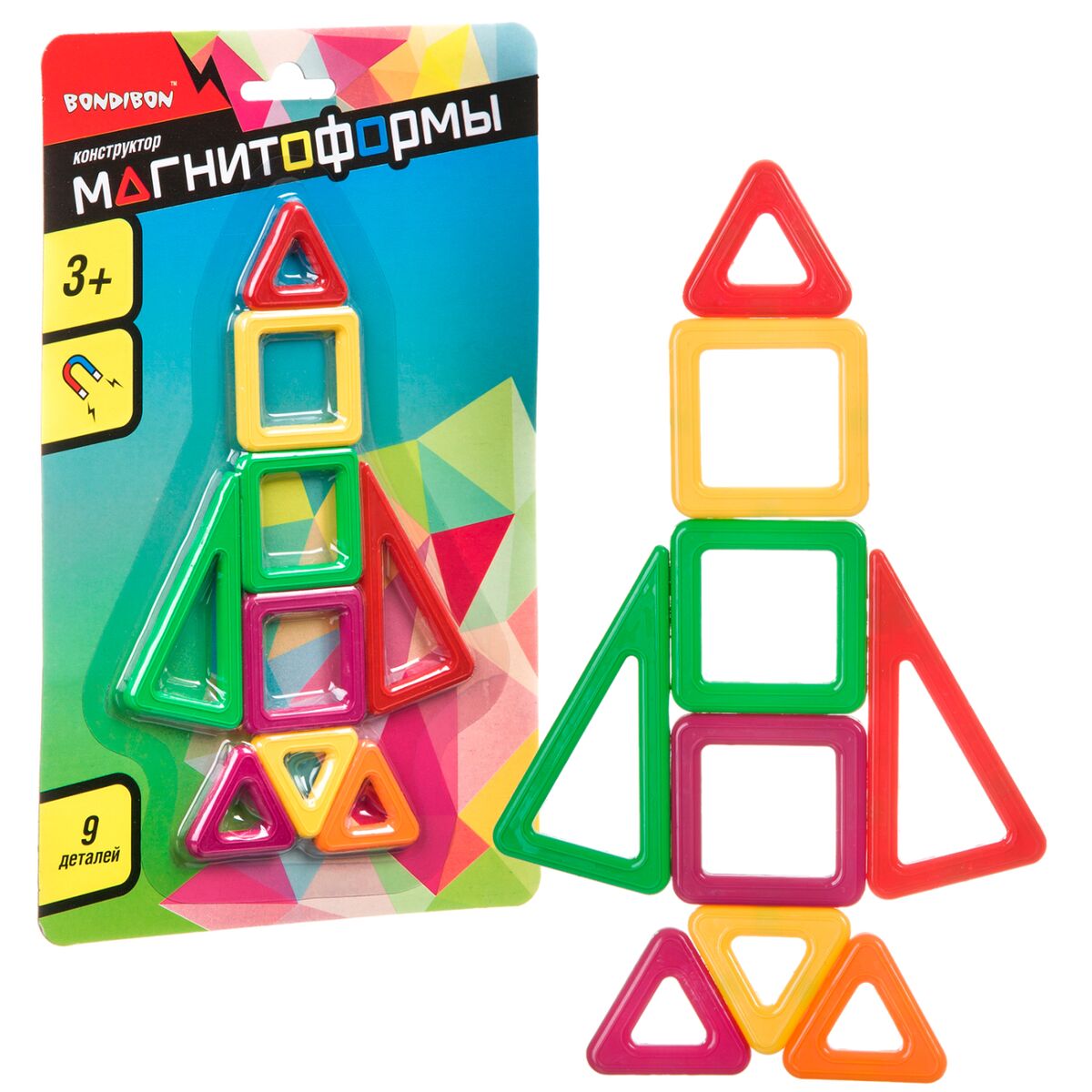 Ни для кого не секрет, что конструкторы являются одной из самых развивающих игрушек для детей. Сборка конструкторов напрямую влияет на развитие математических способностей. Яркие магнитные детали конструктора «РАКЕТА» из серии Магнитоформы помогают легко и увлекательно изучать математику, геометрию, механику. Кроме того игра в конструкторы развивает моторику, логическое и пространственное мышление, способствует развитию воображения и творческого мышления. «Магнитоформы» от Бондибон позволяют собирать плоские и объемные фигуры, в наборе 9 деталей (квадраты 3 шт. 4х4 см,
