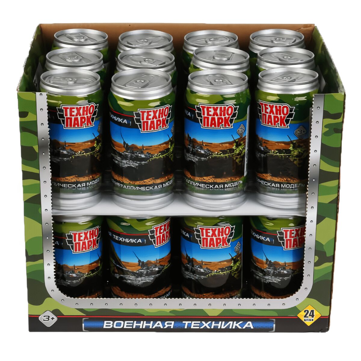 Машина металл банка с различными видами военной техники 7,5см в дисплее Технопарк уп-24шт в кор2*6уп