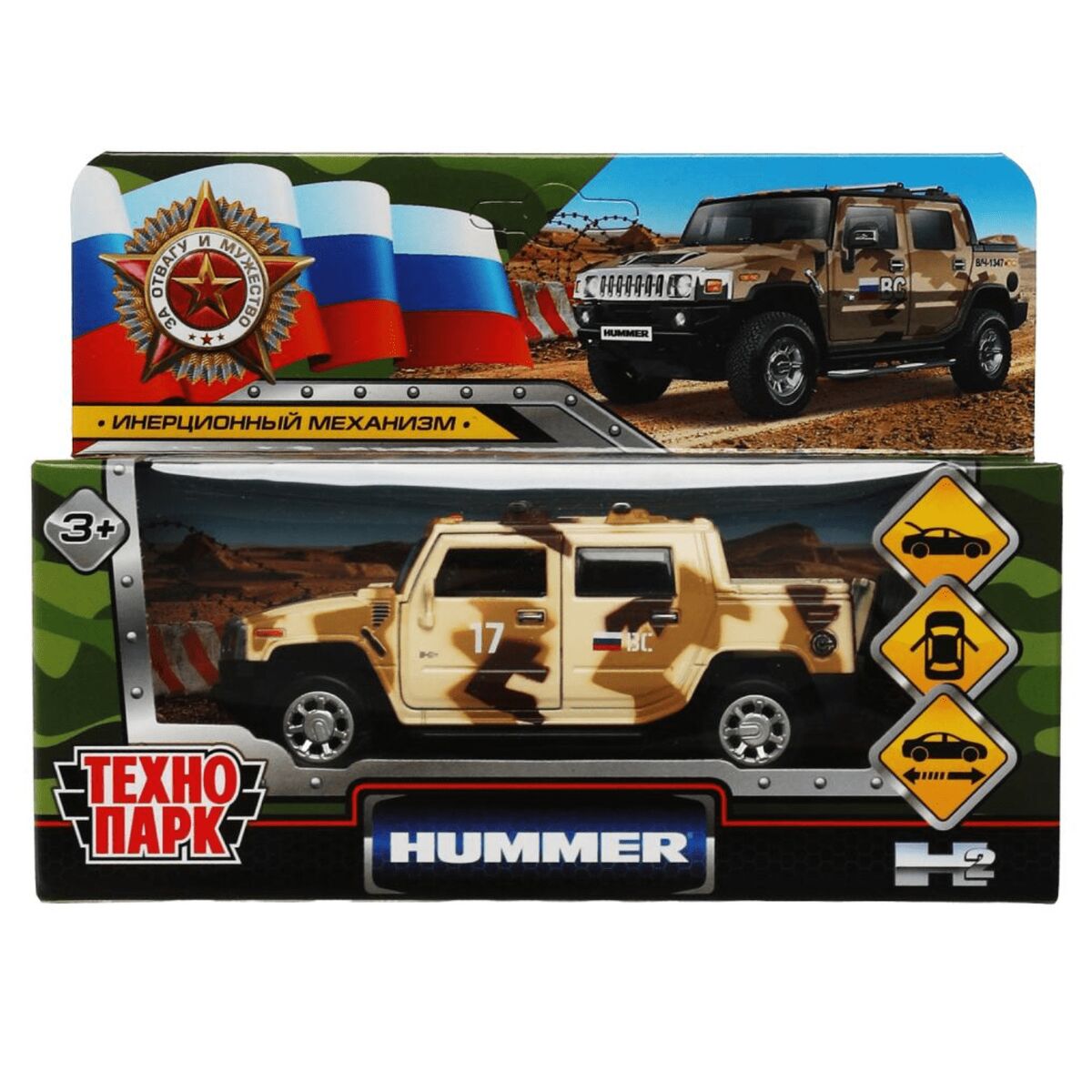 Машина металл HUMMER H2 PICKUP КАМУФЛЯЖ 12 см, двер, баг, инер, песочн, кор. Технопарк в кор.2*36шт