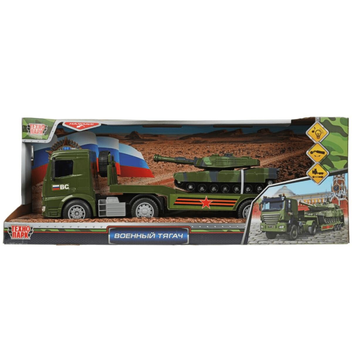Инерционная пластиковая модель «Тягач с танком» ТМ «Технопарк» — прекрасный подарок для ребёнка: