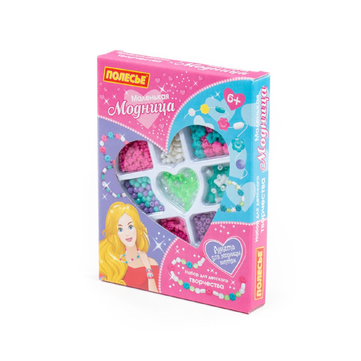 Набор для детского творчества «Маленькая модница» (235 элементов) (в коробке) от фабрики «Полесье» позволит ребёнку почувствовать себя настоящим дизайнером бижутерии, а также научит создавать удивительные аксессуары! В комплект входит более 200 бусинок, шнурок и резиночка для украшений. Все бусины имеют разную форму и цвет, выполнены из качественного пластика. Разнообразит игру и сделает её ещё интереснее анкета модницы, которая также входит в комплект. С таким набором ребёнок будет фантазировать, творить, создавать своими руками и играть.