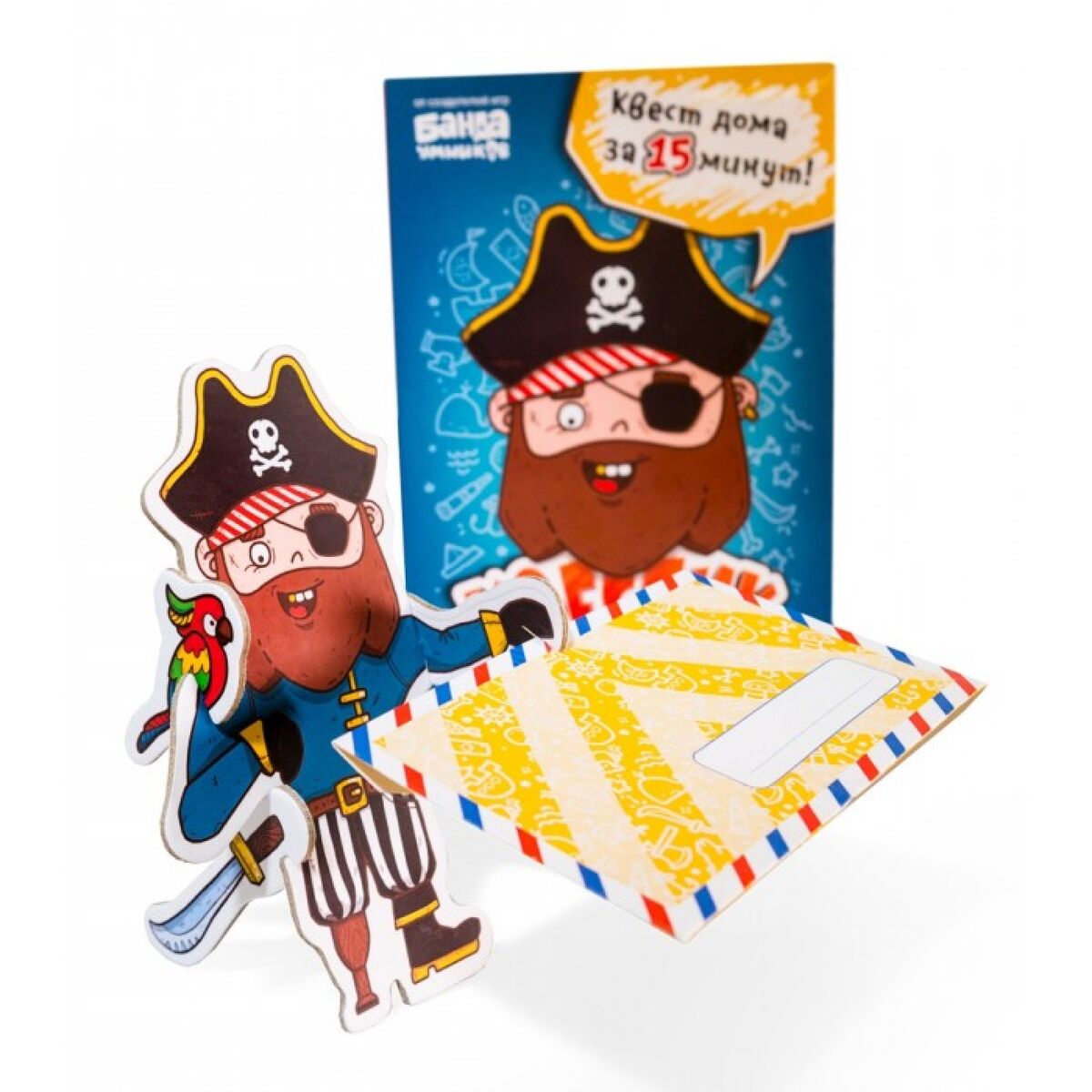 7 конвертов Письмо, начинающее квест Фигурка пирата, начинающая квест 2 комплекта наклеек: для украшения подарка и стрелки для навигации