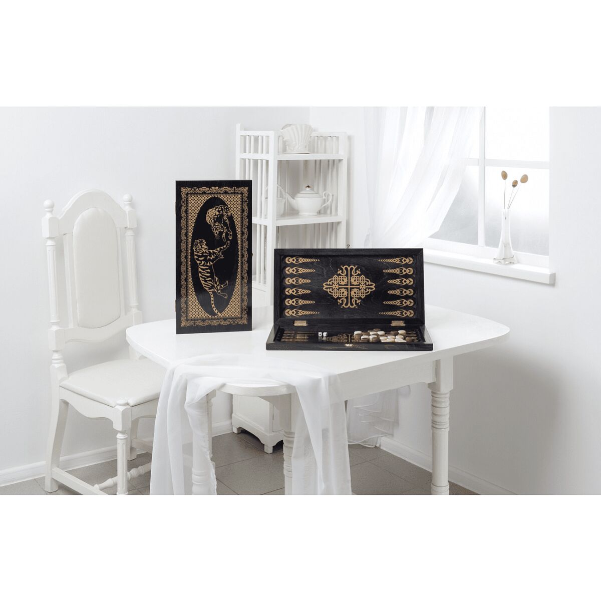 Главная Шахматы Нарды Нарды средние черные рисунок золото «Тигры» (480*240*40)