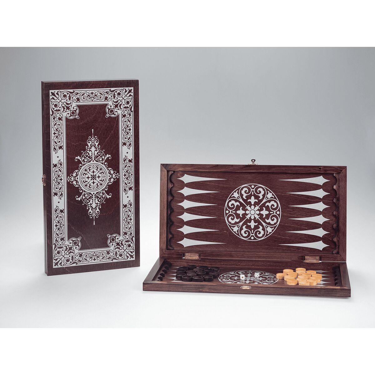 Нарды средние венге рисунок серебро «Геометрический орнамент» (480*240*40)