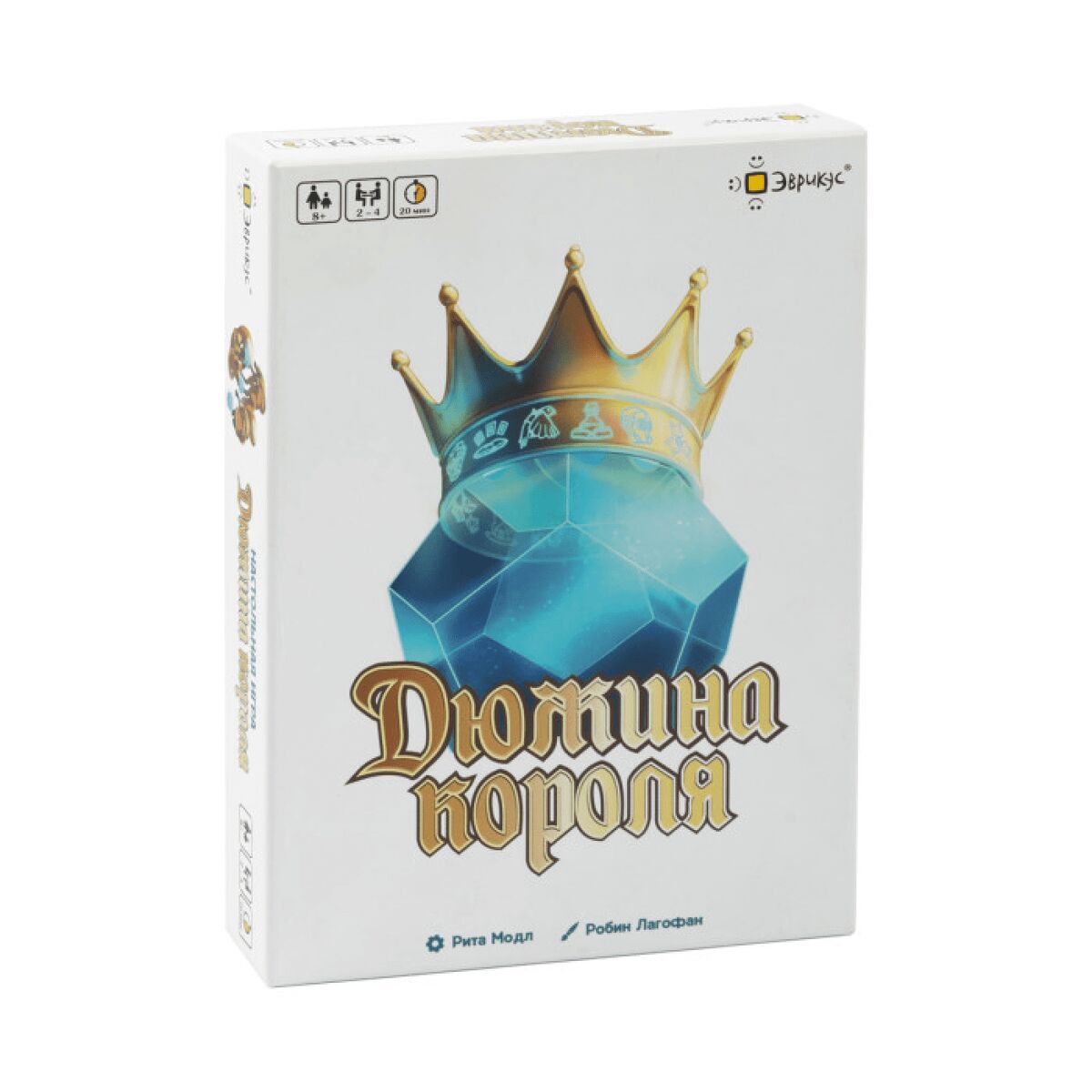 «Дюжина короля» — это тактическая настольная игра, в которой вам предстоит предугадывать действия соперников в борьбе за наибольшее значение вашего кубика. Каждый ход игроки разыгрывают 1 из своих карт, меняющих значение кубиков игроков на столе. Для победы в игре необходимо стать победителем в 2 раундах.
