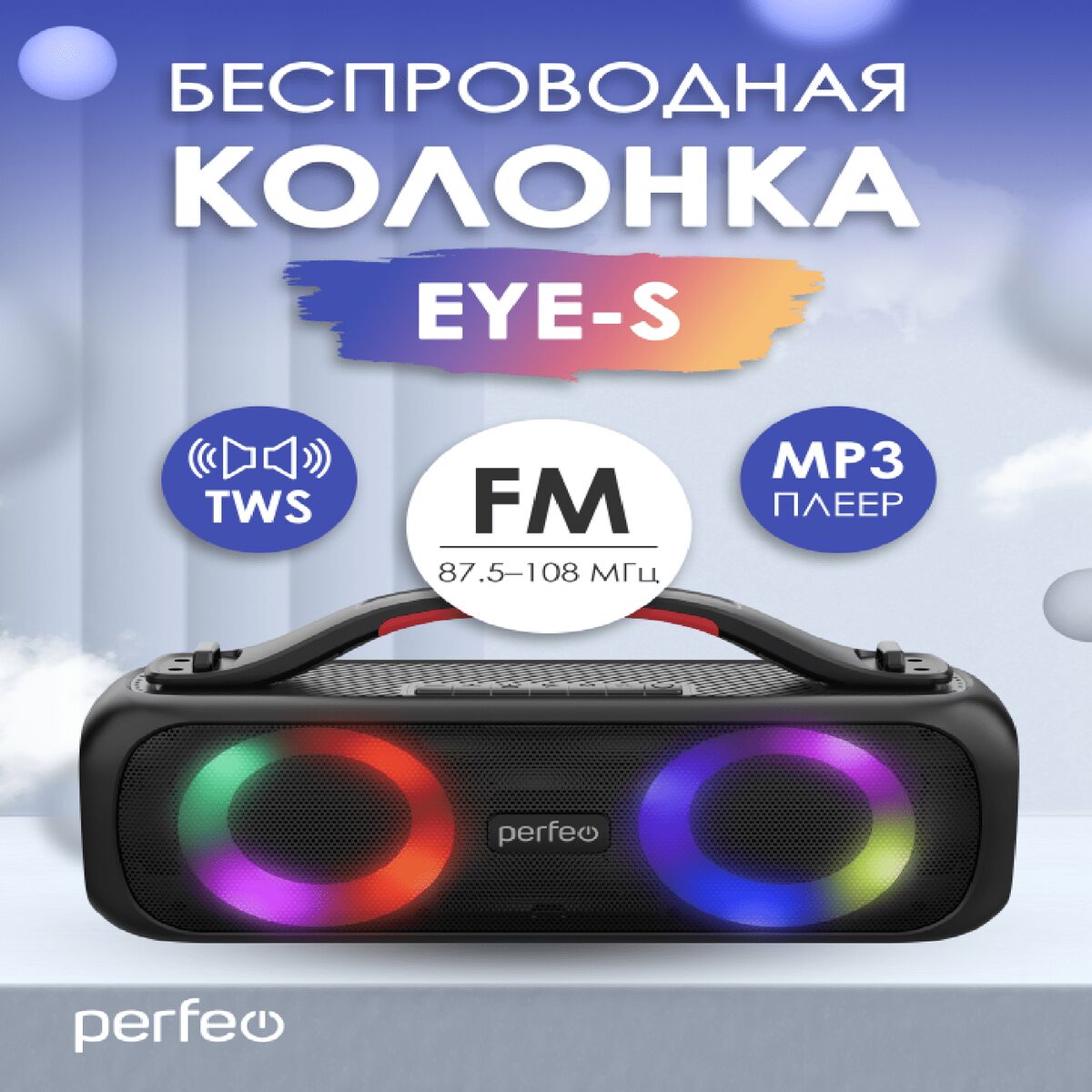 Perfeo Bluetooth-колонка «EYE-S» 16W, MP3 USB, AUX, FM, VA, HF, TWS черная