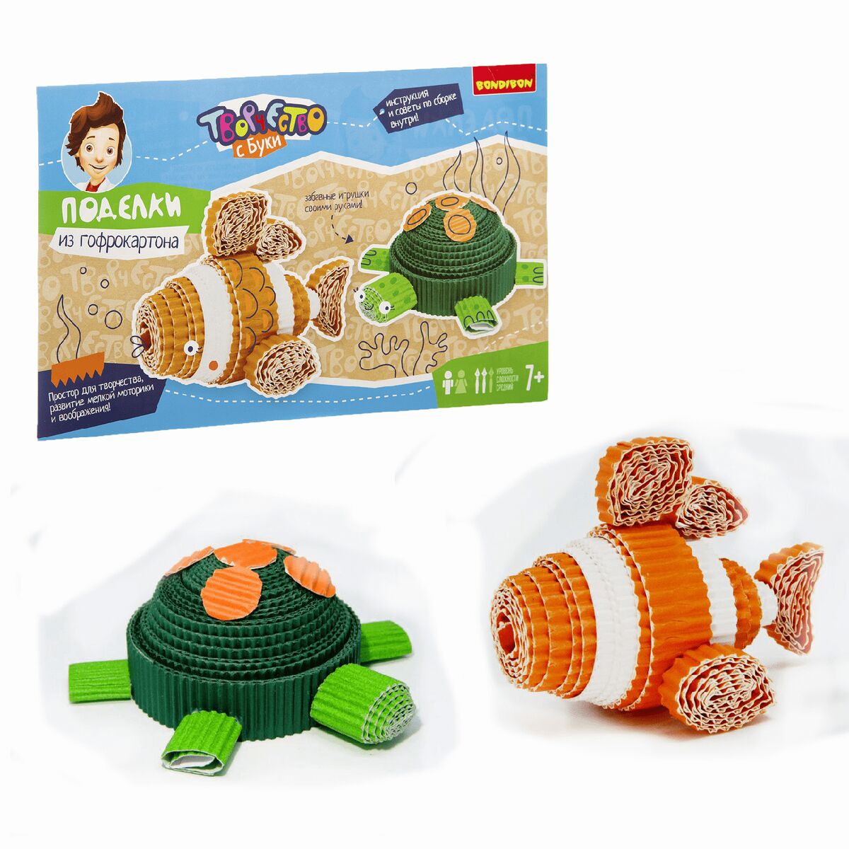 Набор для творчества ПОДЕЛКИ ИЗ ГОФРОКАРТОНА: ЧЕРЕПАШКА И РЫБКА серии Творчество с Буки от Бондибон – это интересный и полезный подарок для детей на утреннике в начальной школе.