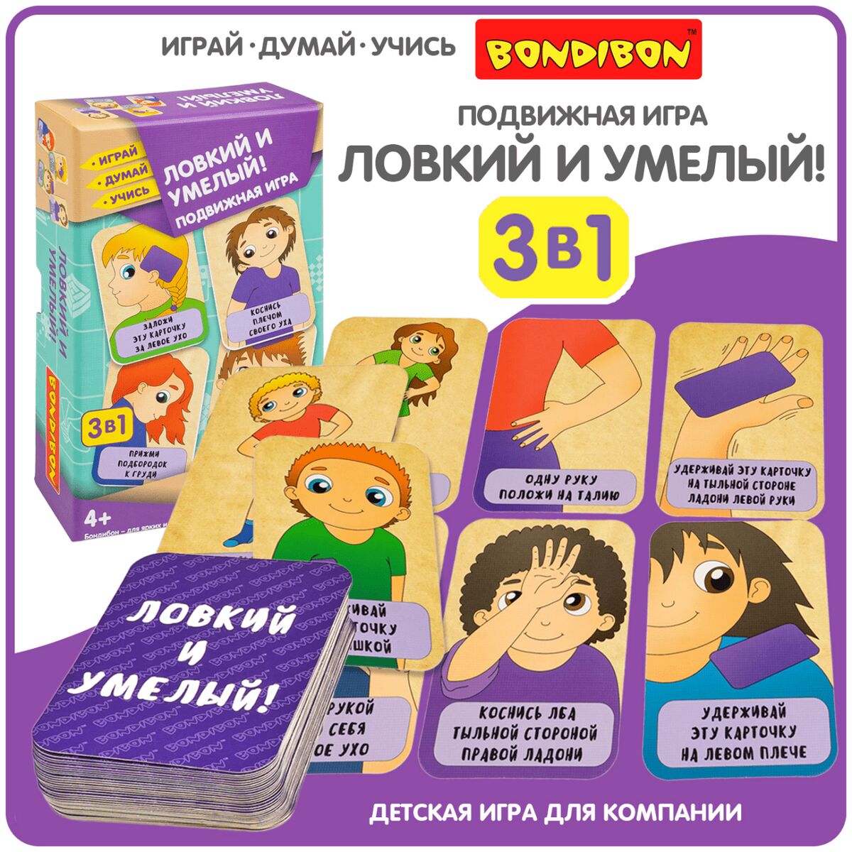 Для веселой зарядки в детском саду, разминки в школе, вечеринки с друзьями и семейного досуга Вам необходима подвижная игра ЛОВКИЙ И УМЕЛЫЙ!, разработанная профессионалами! Это целых три игры в одной серии Играй Думай Учись от Bondibon!