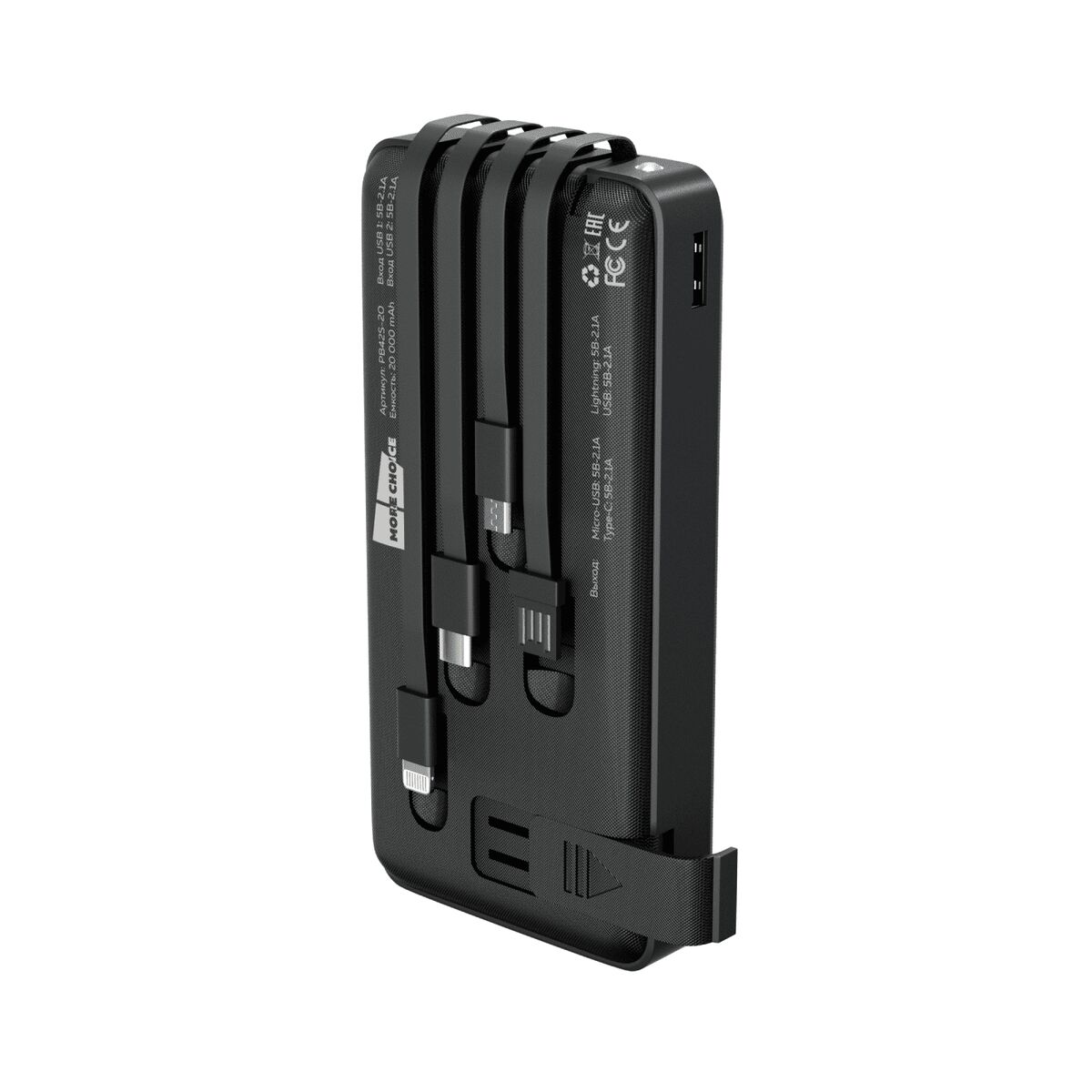 *Встроенные зарядные кабели: micro-USB, Type-C и Lightning 8-pin