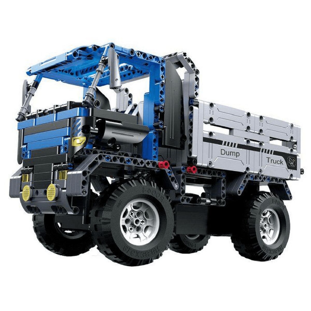 Набор для сборки Самосвала состоит из 638 деталей. Конструктор разработан так, чтобы ребёнку пришлось постараться – иначе это было бы не интересно. Но серьёзных трудностей со сборкой не возникнет: детали разных цветов, форм и размеров имеют удобную блочную конструкцию и хорошо стыкуются друг с другом. Основным материалом служит безопасный для здоровья пластик. Также машина имеет шесть резиновых колёс. Задний борт кузова у машины открывается, поднимается кабина и кузов.
