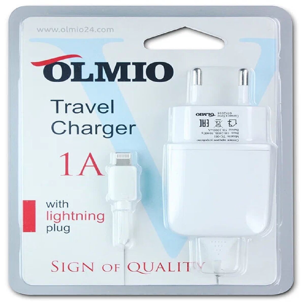 Сетевое зарядное устройство 8-pin для iPod/iPhone/iPad, 1А, белый, OLMIO