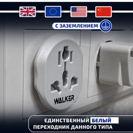 Сетевой адаптер WH-01 250В/16А UK/US/CN на евровилку с заземлением Walker 150 ₽