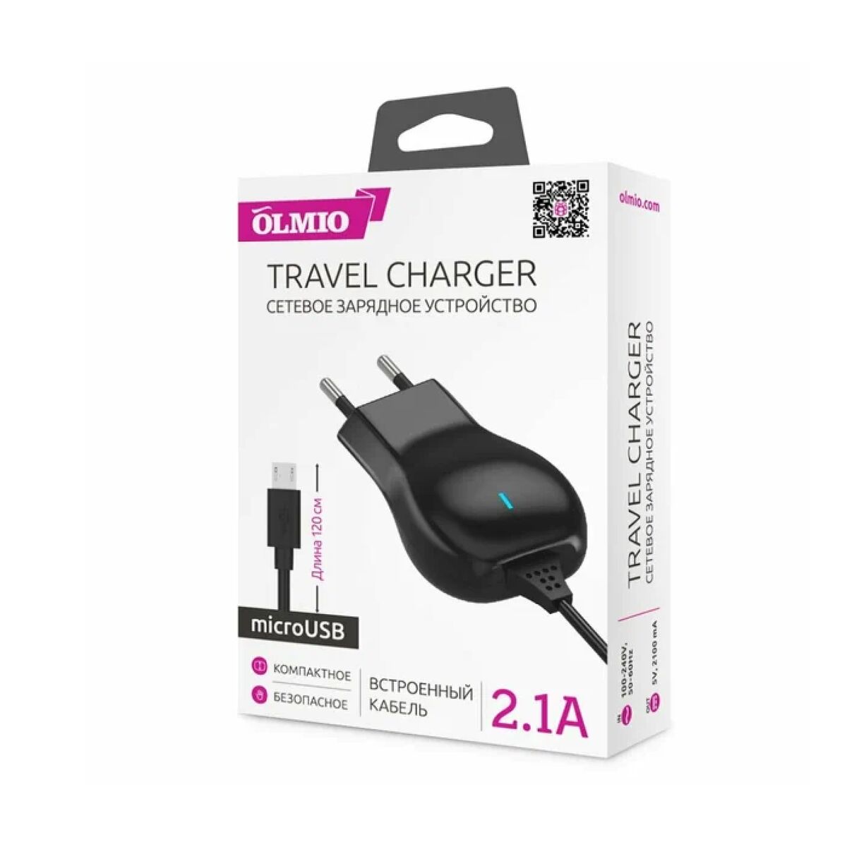 Сетевое зарядное устройство OLMIO microUSB, 2.1А