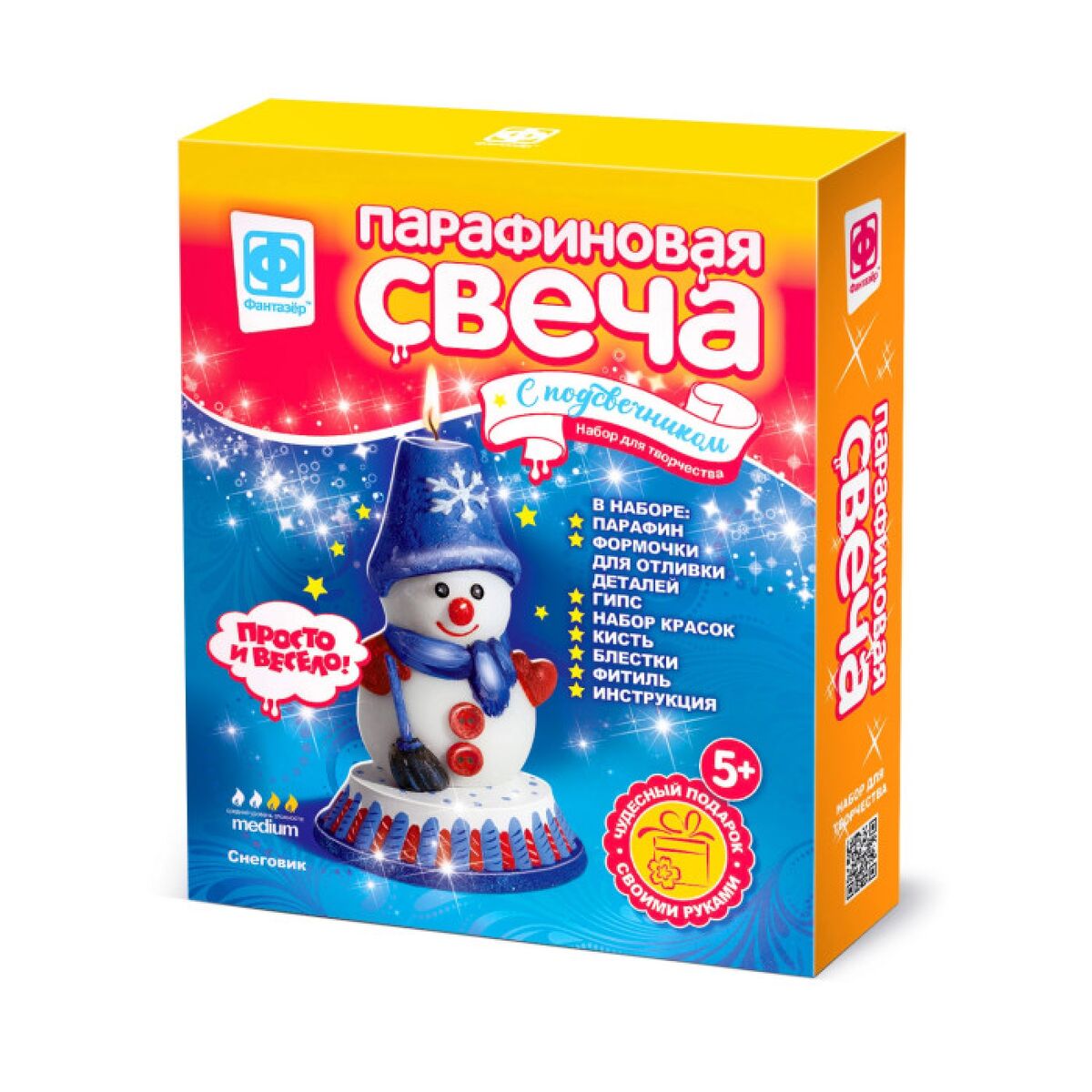 Фантазер Парафиновая свеча с подсвечником Снеговик