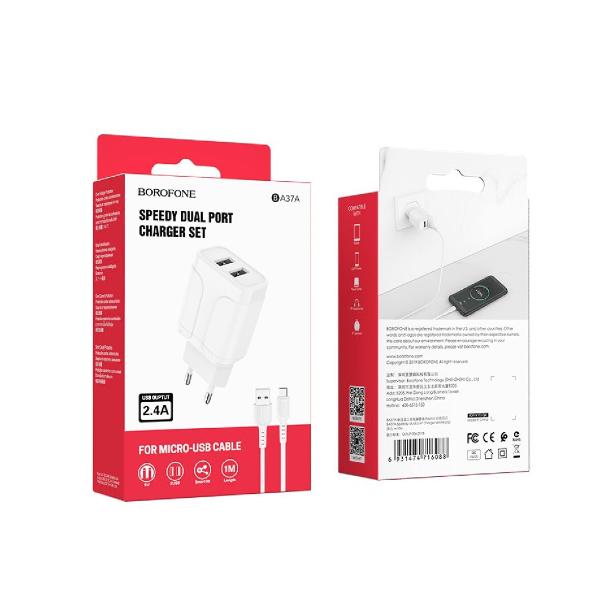 СЗУ 2USB + Apple 8pin 2.4A BA37A Borofone